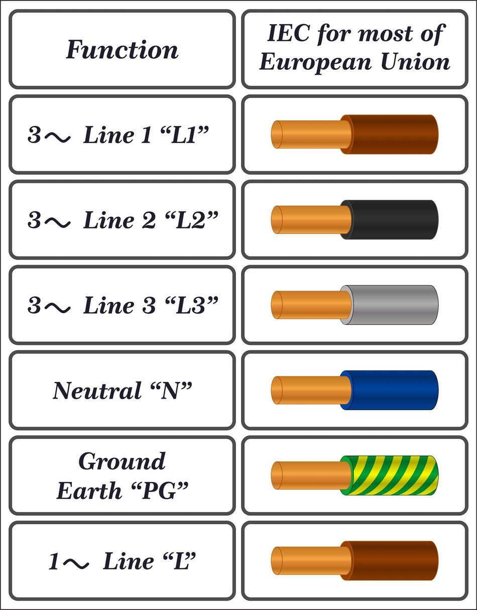 Fig 4: IEC color codes for three-phase wiring