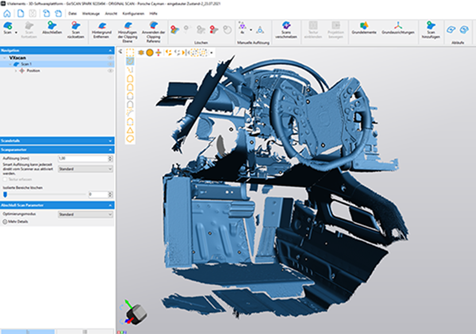 Paravan uses the Go!SCAN SPARK for a variety of other applications. In this case, the scan was used for a preliminary study to digitally place the scanned customer in his future vehicle in order to analyze and determine the optimal seating position for operating the input devices (steering and gas-brake) in the vehicle in advance. Until now, all optimizations to the customer’s vehicle were only carried out during adjustment work together with the customer. With the help of the 3D scan, many of these adjustments will be made in advance in the future. This saves a lot of time during the final optimizations before final delivery of the vehicle to the customer at the end of the project.