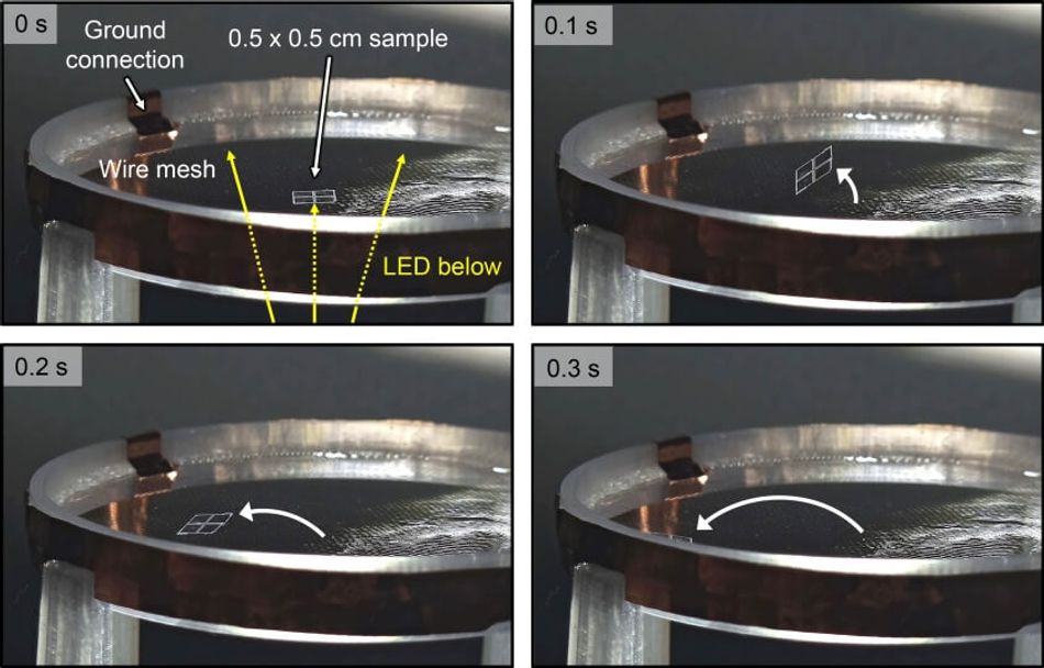 The researchers built thin, centimeter-scale membranes from ceramic alumina, with a layer of chromium on the bottom to absorb sunlight. When light hits this structure, the heat difference between the top and bottom surfaces initiates a photophoretic lifting force, which exceeds the structure’s weight.