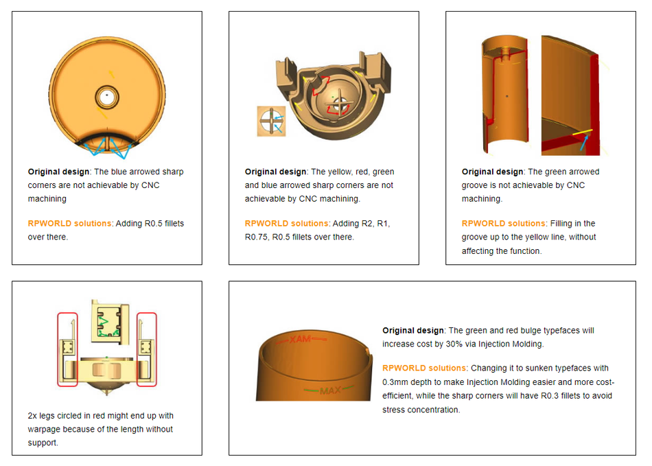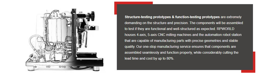 The in-depth DFM analysis RPWORLD engineering team can optimize part designs and eliminate production risks before mass production. Take our capsule coffee maker project for instance. The water tank and brewer unit components are produced by CNC machining and vacuum casting. Before production begins, we analyze the part design, exchange ideas on the potential risks with customers, and provide DFM analysis with solutions to put everything right at the very beginning. It should be noted that we provide in-depth DFM analysis for every project for free when quoting.