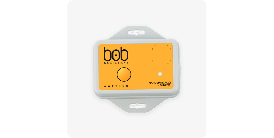 The BoB Assistant from Watteco is an example of an IoT device that can be deployed on various types of machinery across many industries such as manufacturing, energy and facility management. The device has an embedded temperature sensor and a 3 axis accelerometer, which detects orientation, shake, motion, positioning, shock, or vibration. Its embedded analysis algorithms understand and monitor equipment autonomously without any particular configuration. It operates across a LoRaWAN network for maximum range, deep indoor coverage and minimal energy consumption, all while sending only encrypted data. Operating at temperatures from -20°C to +55°C and with a battery life of over 2 years, it supports many applications.