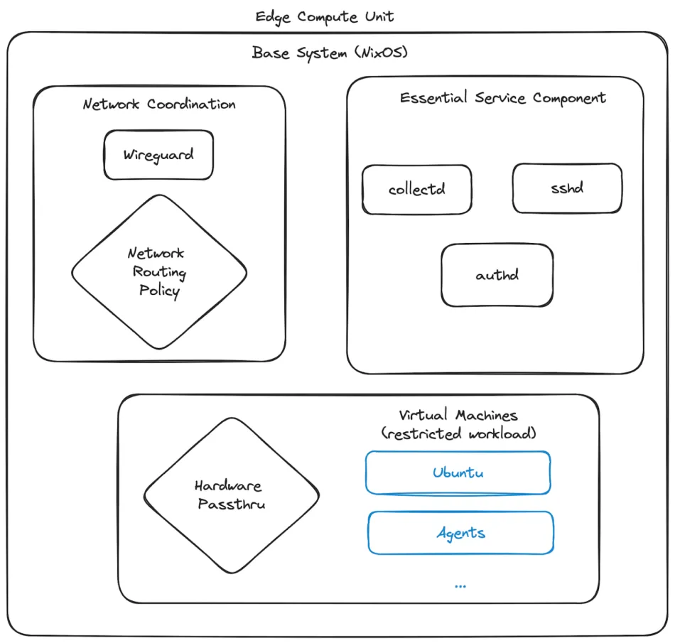 Building a secure and resilient AI edge compute environment presents unique challenges, but through a well-designed OS architecture leveraging NixOS and Colmena, we can effectively address them. This approach ensures reproducibility, consistency, and efficient management of edge devices, ultimately leading to a more reliable and secure deployment.