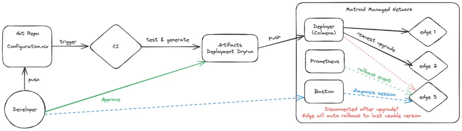 Consistency and Reliability: By providing a reliable mechanism for reproducing system configurations, NixOS minimizes the risk of inconsistencies and errors that can arise from manual configuration or ad-hoc changes. This leads to a more stable and dependable edge computing environment, where AI applications can operate reliably with minimal downtime.