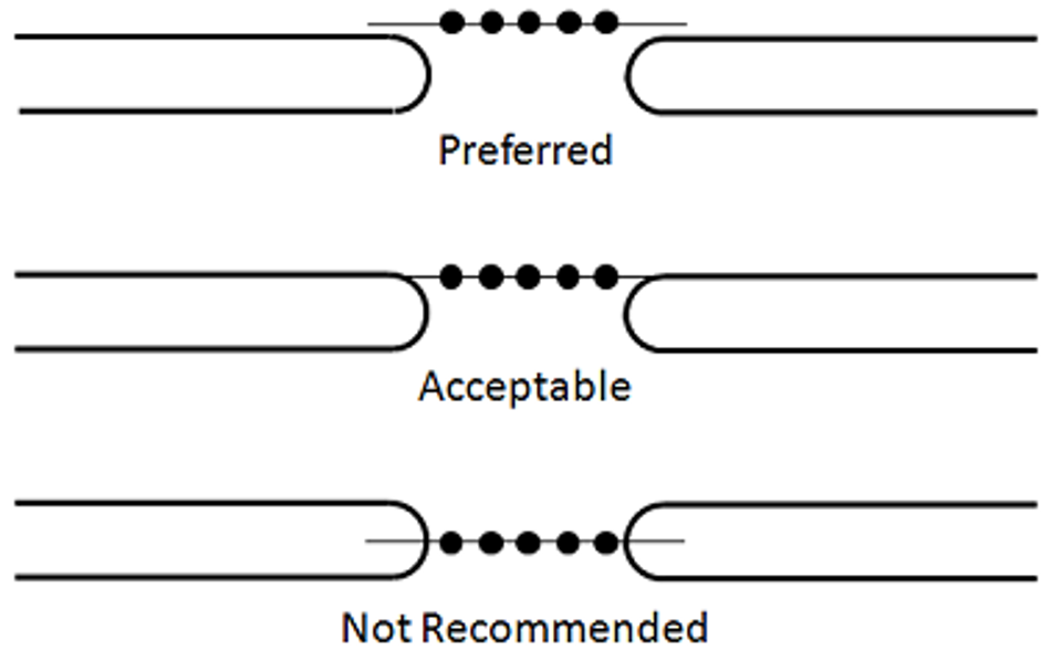 One important aspect is to have a clean edge after the breakaway tab is removed. Slight inset perforations are preferred because they leave an edge requiring little to no post-processing.
