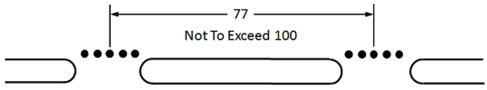 The spacing between PCB breakaway tabs can range from 60 mm to 90 mm, but I recommend 77 mm from center to center as shown in Figure 3. Try not to exceed 100 mm between tabs and try to evenly space them apart.
