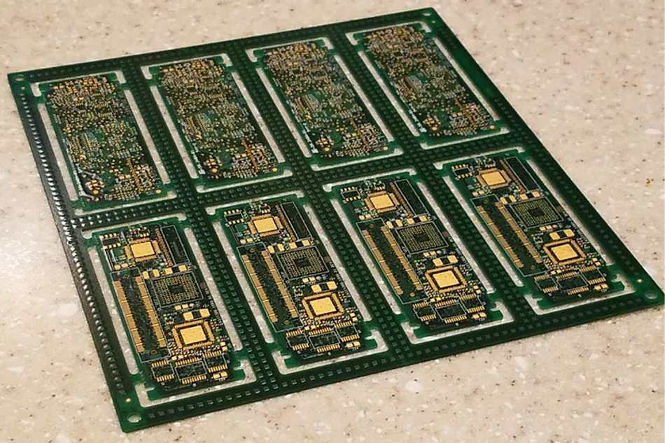 - Multiple PCBs are arranged into a single panel, connected by PCB breakaway tabs.