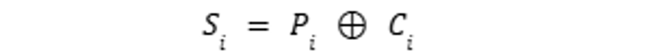 A half adder adds two single bits (A and B) and produces a sum (S) and a carry bit (C ), given by the following formulae.