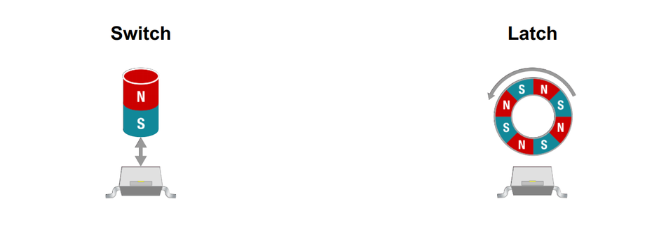 Latches remember their state; once they switch on, they remain latched until a magnetic field of opposite polarity resets them. They are essential in brushless DC motors where the sensor ensures proper commutation sequence.