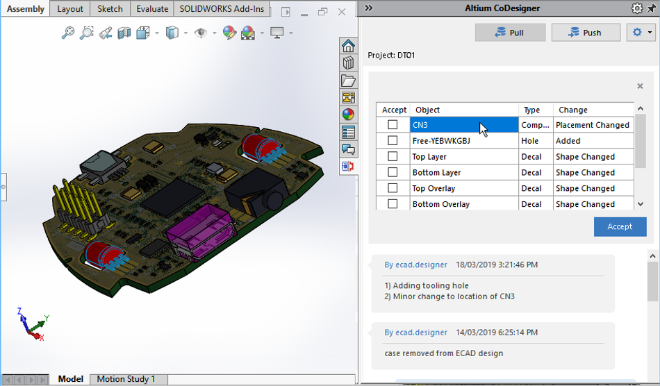 Instead of exchanging files, ECAD and MCAD engineers can co-create using synchronized data. Changes update instantly across their preferred design tools. Mechanical feedback can be given directly in the design view. Electrical designers can visualize mechanical constraints while they do their work.