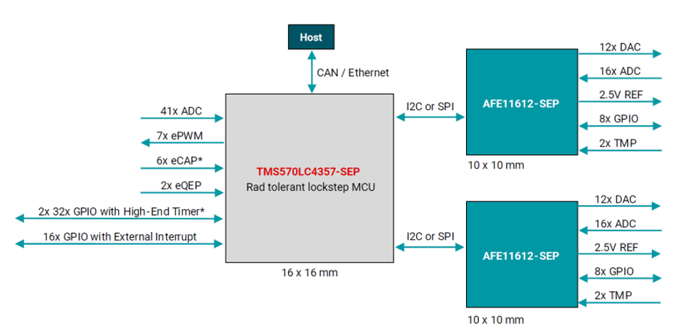 Whether deployed as a central controller for the entire satellite bus or as a localized FDIR unit on individual PCBs, the TMS570LC4357-SEP delivers high reliability and flexibility with near-instant fault detection performance.
