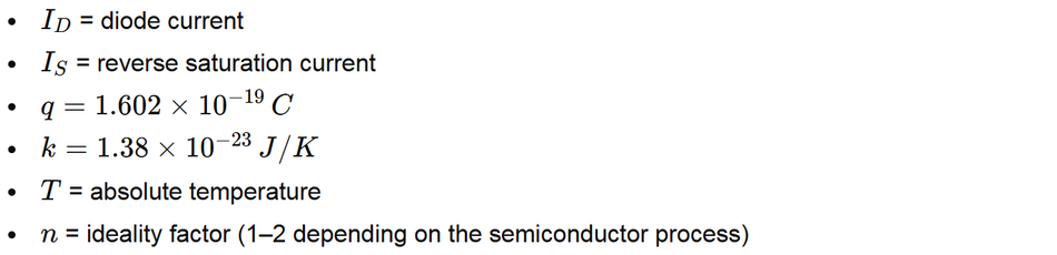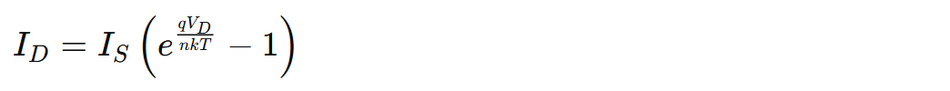 The current that flows through a diode under forward bias is not linear. It follows the Shockley Diode equation:
