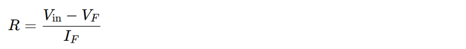 where V(in) is the supply voltage, V(F) is the LED forward voltage, and I(F) is the desired forward current. Failure to include a resistor can destroy the diode due to runaway current.