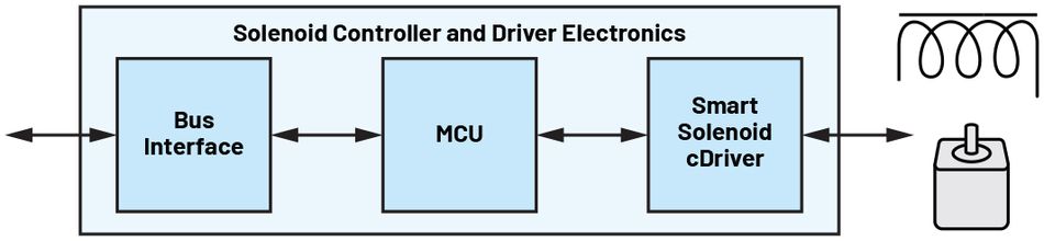 A typical embedded hardware solution for a single solenoid, a manifold, or a multiaxis stepper system consists of a bus interface for communication, a microcontroller unit (MCU) for the application control, and one or more controller/driver units as shown in Figure 4.