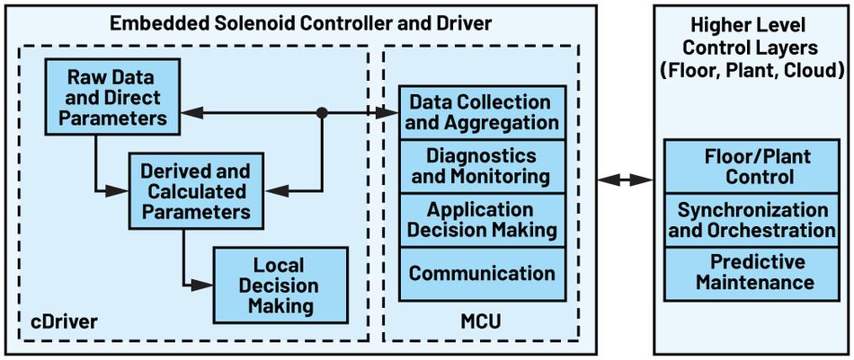 With a fusion of sensor and actuator, new cDriver components are enabling smart electromechanical actuators at the edge. cDriver components can do more than just switch a solenoid or spin a motor: they offer extensive diagnostic functions and thereby are a kind of sensor on their own. Preprocessed data make decisions locally and offer safety and monitoring functions. Such smart sensing actuators deliver additional value to the cyber-physical systems and factory floors of the future by solving mechanical challenges, hiding complexity, encapsulating sophisticated functions, providing abundant information to the higher control layers for further processing, and reducing cost and power consumption.