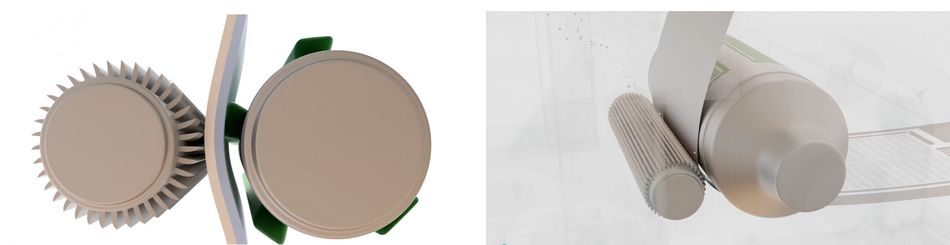 The technology is based on a roll-to-roll mechanical milling process that uses a cliché to pattern an aluminum, copper, or copper-clad aluminum laminate. Once the pattern (with a minimum gap width of 100 µm and pattern pitch down to 400µm) has been applied to the laminate, a precision milling wheel mills away the pattern from the top layer of the laminate, resulting in a substrate with conductive traces. As a mechanical process, DPP does not require the use of any hazardous chemicals, inks, or freshwater. On top of that, the metal removed in the milling process can be fully recycled, resulting in virtually no waste.