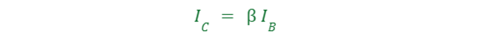 where β (beta) is the current gain hFE, for general‑purpose transistors like the BC547 or 2N3904, β can be around 100. It means that a base current of 0.1 mA controls a collector current of approximately 10 mA. The relation is given as: