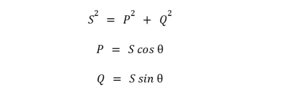 The following figure shows the power triangle and their calculation formulae.