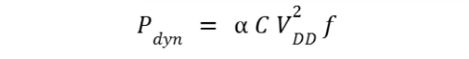 Reducing switching activity via bus encoding or glitch filtering reduces the effective α in the dynamic power formula.