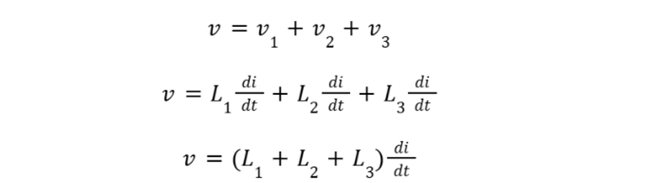 Consider three inductors L1,L2, and L3 connected in series. Because the same current flows through each coil, the voltages across them add: