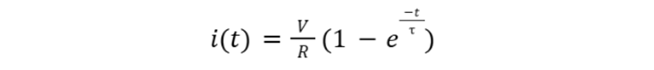 When an inductor in series with a resistor is driven by a step voltage, the current does not rise instantly. Instead, the inductor resists changes in current, and the current follows an exponential trajectory. For a series RL circuit with inductance L and resistance R connected to a constant voltage source V, the current response is: