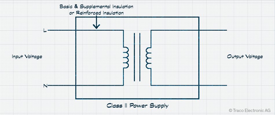Class II power supplies take a different route to safety. Rather than grounding the enclosure, they eliminate the need for earth by using double or reinforced insulation. This method physically separates live circuitry from the user with multiple insulating barriers, enough that even a single failure won’t result in an electric shock.