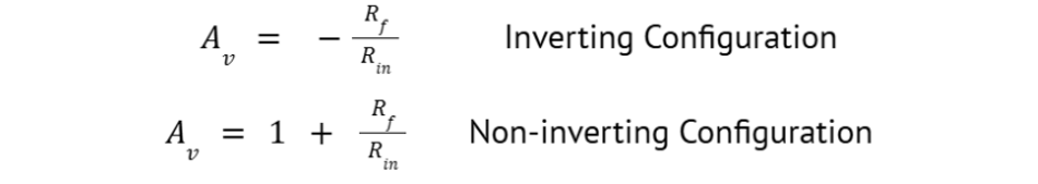 Gain Under Unity | The inverting configuration allows a gain of less than one (attenuation). The non-inverting configuration’s gain has a minimum of 1 V/V, meaning it cannot attenuate signals. |