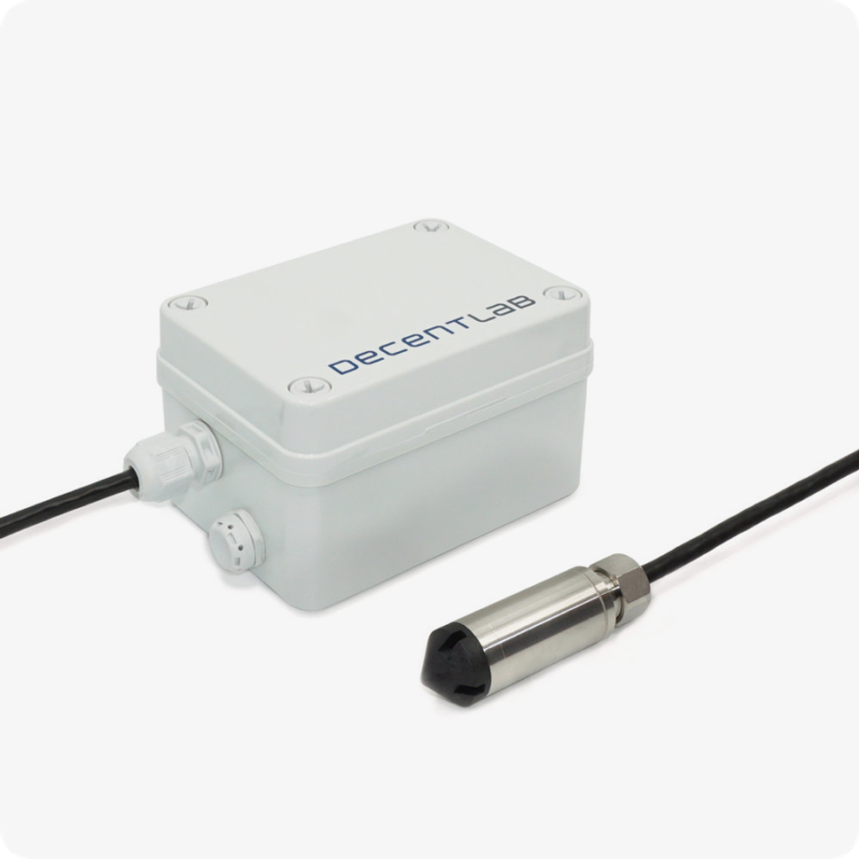 A pressure sensor such as the Decentlab DL-PR26 is capable of remotely monitoring water levels in tanks. This particular sensor measures the relative pressure at the sensor head compared to the pressure at the cable end, indicating the depth of the water. This device additionally measures the temperature of the sensor head. It offers the advantage of remote real-time monitoring for several years without requiring battery replacements.