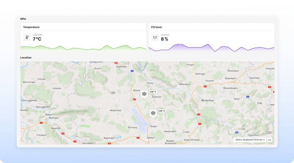 To connect the device to the cloud, the Swisscom Low Power Network (LPN) covers 97% of the Swiss population, making it a great connectivity option in Switzerland. With the interactive LPN coverage map, it is easy to see the coverage zones.