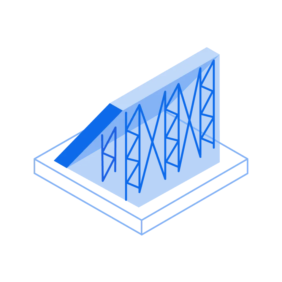 - Support overhangs >45° and floating features