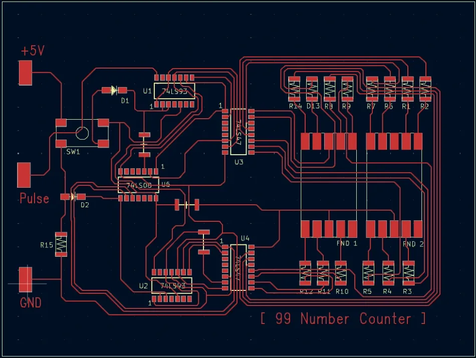 When powered by a 9V battery, the circuit successfully counted from 0 to 99 at an adjustable speed. A reset button allowed restarting the sequence, and the integration of both a linear regulator (78M05) and switching regulator (LM2575) on the same board provided a practical way to compare their efficiency, thermal behavior, and noise generation.