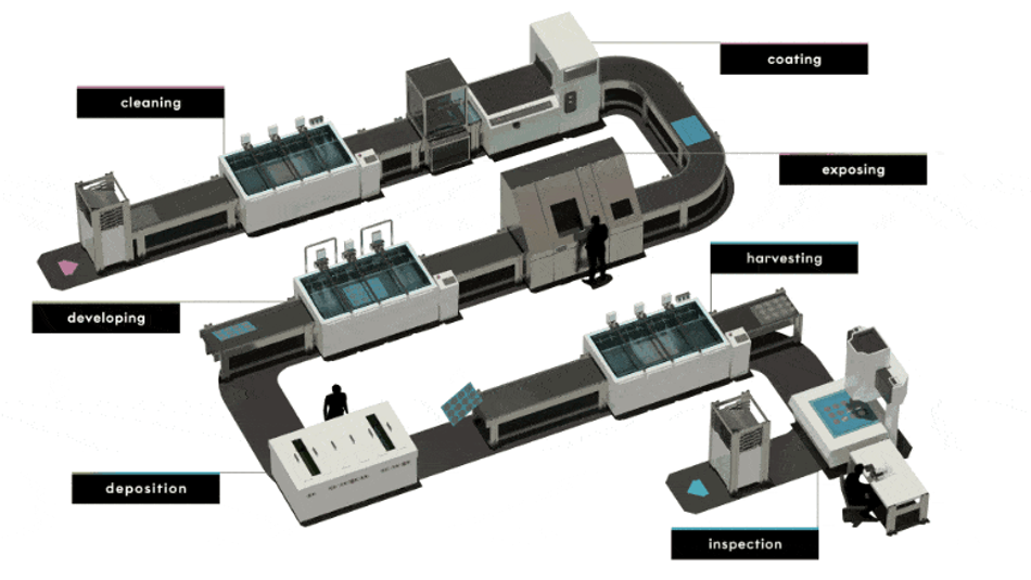 Veco, as the world leader and largest independent supplier of Electroforming, has been moving the industry forward, with unparalleled experience in Electroforming, advanced lithography technology, and accumulated knowledge of metallurgy. Veco’s unique Advanced Lithographic Electroforming is also referred to as Advanced Photo Electroforming. At Veco, LDI(laser direct imager) is used to expose the photoresist layer directly on the substrate. It allows for rapid prototyping and design changes, as the laser patterns can be easily adjusted and updated without the need to create new physical masks or tools. This flexibility enables faster and more cost-effective iterations in the design process, compared to the time-consuming and expensive process of fabricating new glass tools for each design change.
