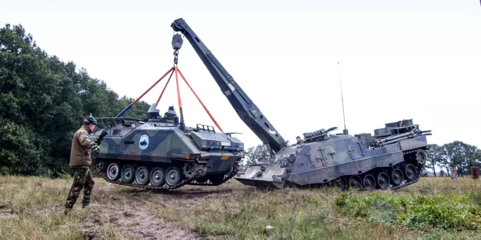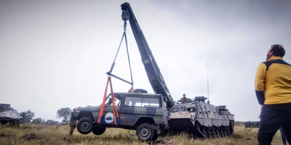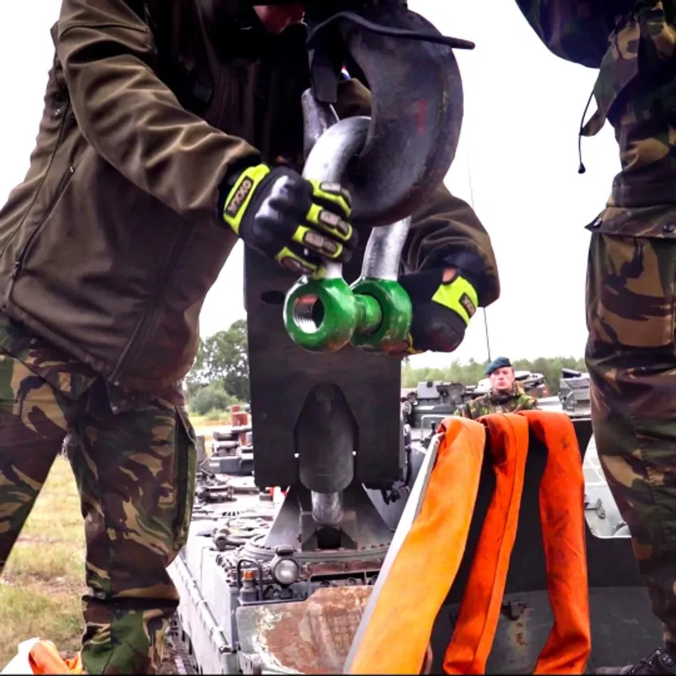 After several months of designing, printing, testing, and planning – it was time for action! Two links were about to lift an actual military heavy vehicle. On a Dutch Army base in the south of the Netherlands, the 13th Light Rhino Brigade assisted us with their armored recovery vehicle. Their Leopard 2 “Buffalo” has a crane mounted on the front and is designed to recover heavy vehicles such as trucks and battle tanks.