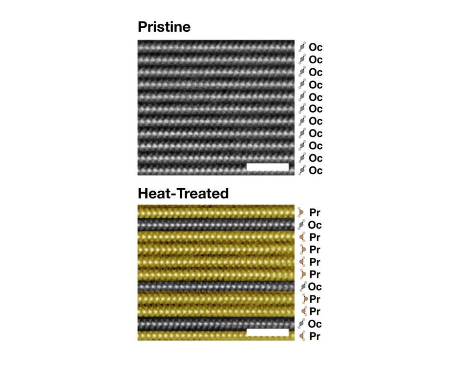 But Suk Hyun Sung, a graduate researcher in Hovden’s lab and the first author on the paper, changed the sample’s properties by heating it in an oxygen-free environment while observing the process under an electron microscope. As the sample heated, layers began to switch, one by one, into a prismatic state—a different arrangement of the same atoms.