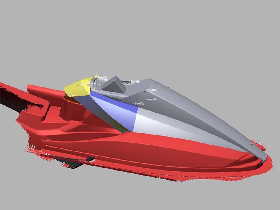 With the scan data in hand, engineers extended the bottom hull to meet the new jetski's design specifications. Working directly with accurate 3D data enabled them to modify proven geometries confidently, ensuring that all changes maintained aerodynamic and hydrodynamic performance.