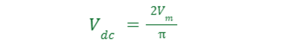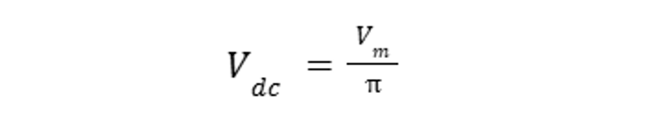 The average output (DC) voltage Vdcof a half‑wave rectifier supplied with peak voltage Vm is: