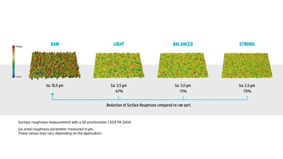 This article explains what roughness is in 3D printing, provides surface roughness measurements for SLS, MJF, FDM, DMLS, Carbon DLS, and Polyjet 3D prints and highlights the benefits of surface treatments to achieve a smooth surface for 3D printed parts.