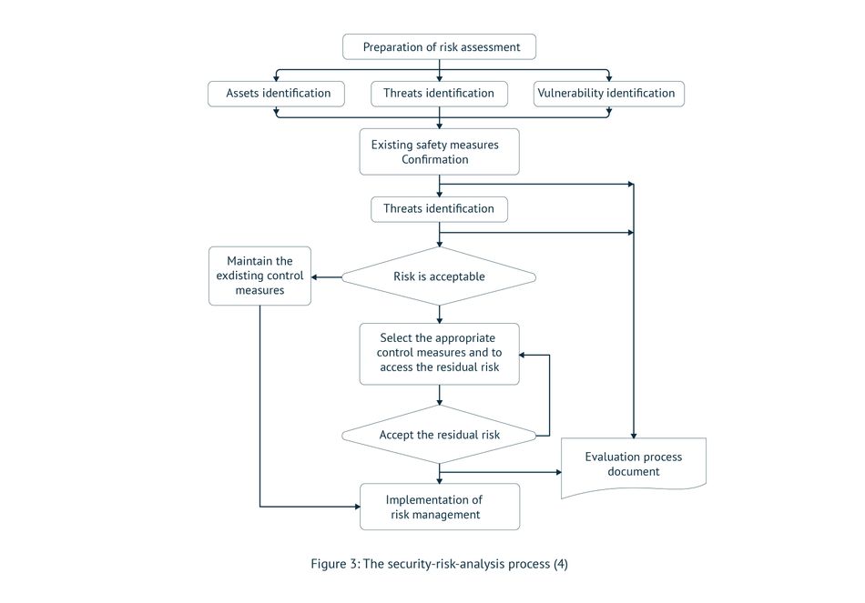 SRA is a methodology that estimates the risk and possible damage to assets. It determines the level of risk-based upon attack potential of threats and potential damage if assets are compromised. The security of targeted assets is ensured by an appropriate risk management algorithm, which results from SRA, which consists of processes as described in Figure 3.