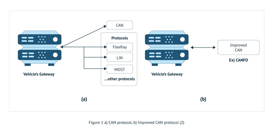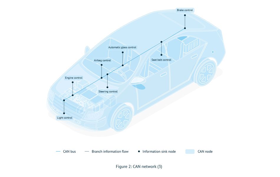 The embedded systems in an automobile are composed of more than 100 ECUs connected utilizing a controller area network (CAN) protocol as seen in Figure 1. Such systems have more than 100MB of software that is expanding connectivity to clouds and other internet services, handling an ever-growing volume of digital information, and have highly vulnerable points, with a mix of various sensors and actuators. Consequently, this can lead to possible dangerous automotive safety situations that result from cyberattacks.