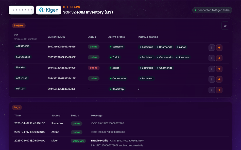 Beyond the PR and the slide decks, we wanted to validate if SGP.32 was ready for the rigors of production. We teamed up with several partners to put their SGP.32 readiness to the test, including Kigen (eSIM and eIM provider) and the connectivity providers: ZARIOT, Soracom, and Onomondo.