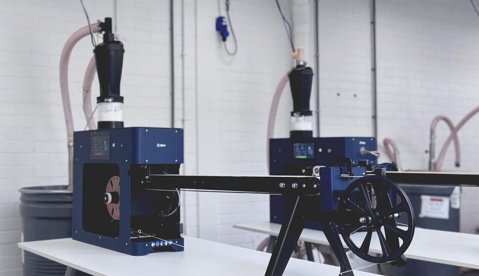 The recycling and filament production workflow itself involves automated steps that transform powder waste into high-quality filament with ~50 micron tolerances. These steps include: