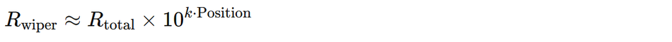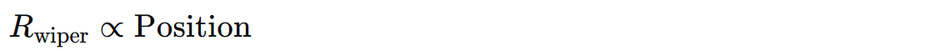 This connection yields an output voltage proportional to the wiper position. The wiper output follows the classic divider equation: