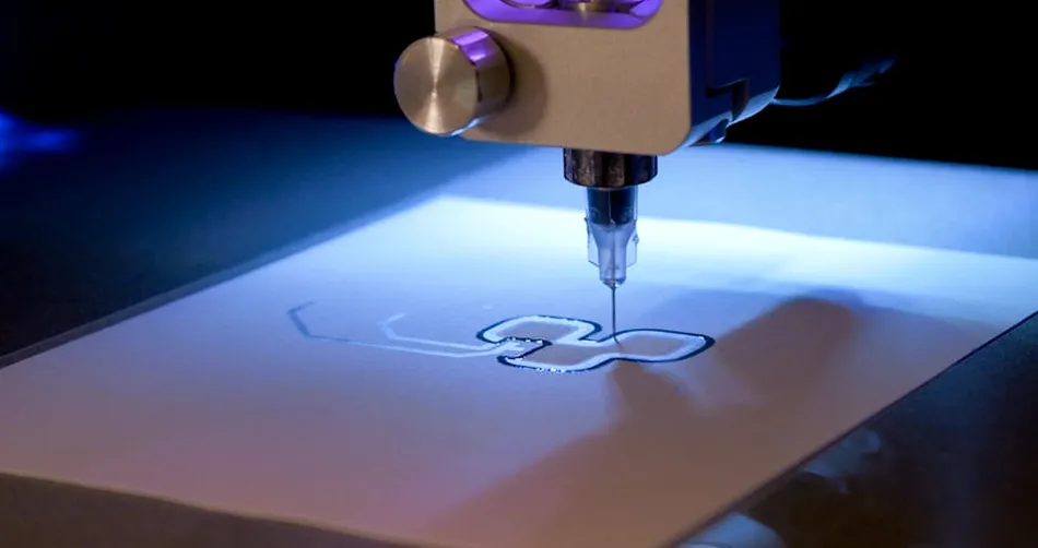 Direct Ink Writing is becoming a key technology in the development and advancement of LAE devices. DIW is a printing method that selectively dispenses a viscous material or ink onto a substrate. The dispensed material is then solidified using UV curing, air drying, or a chemical reaction, resulting in a stable printed pattern.