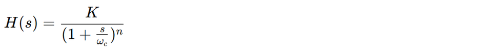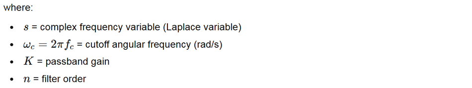 The general transfer function of a continuous-time low-pass filter is expressed as: