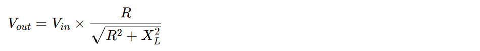 which increases with frequency. This implies that, at lower frequencies, the inductive reactance is small, so most of the voltage drops across the resistor. At high frequencies, the inductive reactance becomes large, most of the voltage drops across the inductor, and the output is attenuated.