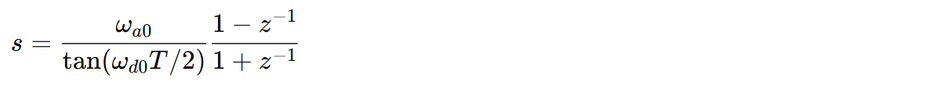 However, this mapping is nonlinear, causing frequency warping, equal frequency steps in the digital domain correspond to unequal steps in the analog domain. To correct this, designers apply prewarping so the digital cutoff frequency aligns precisely with the desired value: