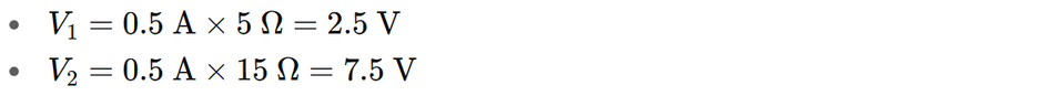 This illustrates that the 15 Ω resistor receives the larger voltage drop due to its greater resistance!