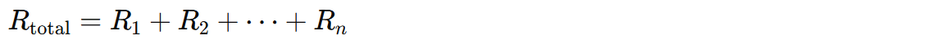 It's essential to recognize that these principles extend beyond just labeled resistors. If there’s any component exhibiting resistance, such as wires, thermistors, or heating elements, that contributes to the total resistance in the same additive way when placed in a series connection. Similarly, other components like inductors and capacitors follow their own rules: inductors in series add their inductances, while capacitors in series reduce to a lower equivalent capacitance, governed by: