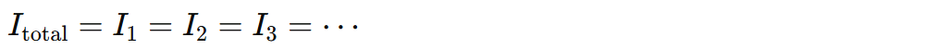 There is only one path for current in a series circuit, so the current is identical through every component. In terms of the equation: