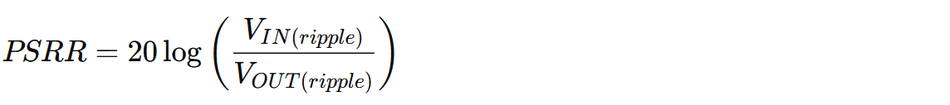 PSRR, also called ripple rejection ratio, is the ability of an LDO to suppress ripple on the input or bias voltage. Toshiba defines PSRR as the ratio of input ripple to output ripple expressed in decibels. High PSRR LDOs can attenuate input noise and switching ripple, making them ideal for sensitive analog circuits. For example, the TCR15AG series by Toshiba achieves about 95 dB PSRR at 1 kHz. [2] The TI LP5922 specifies 70 dB PSRR at 1 kHz. PSRR generally decreases with frequency, so measuring it across the relevant range is important.
