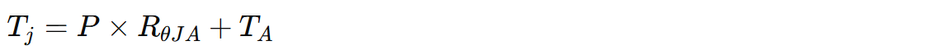 Designers should calculate P under worst‑case conditions and verify that it is below the regulator’s maximum power dissipation rating. The junction temperature Tj can be estimated using thermal resistance and ambient temperature as: